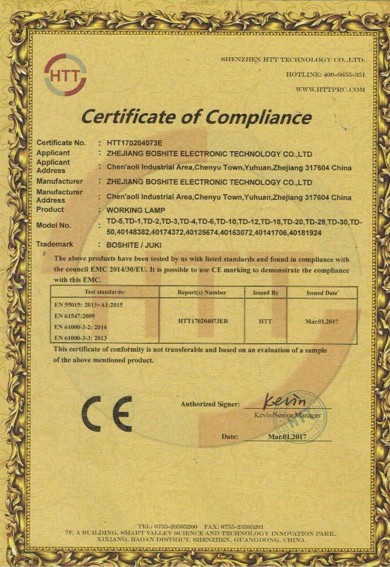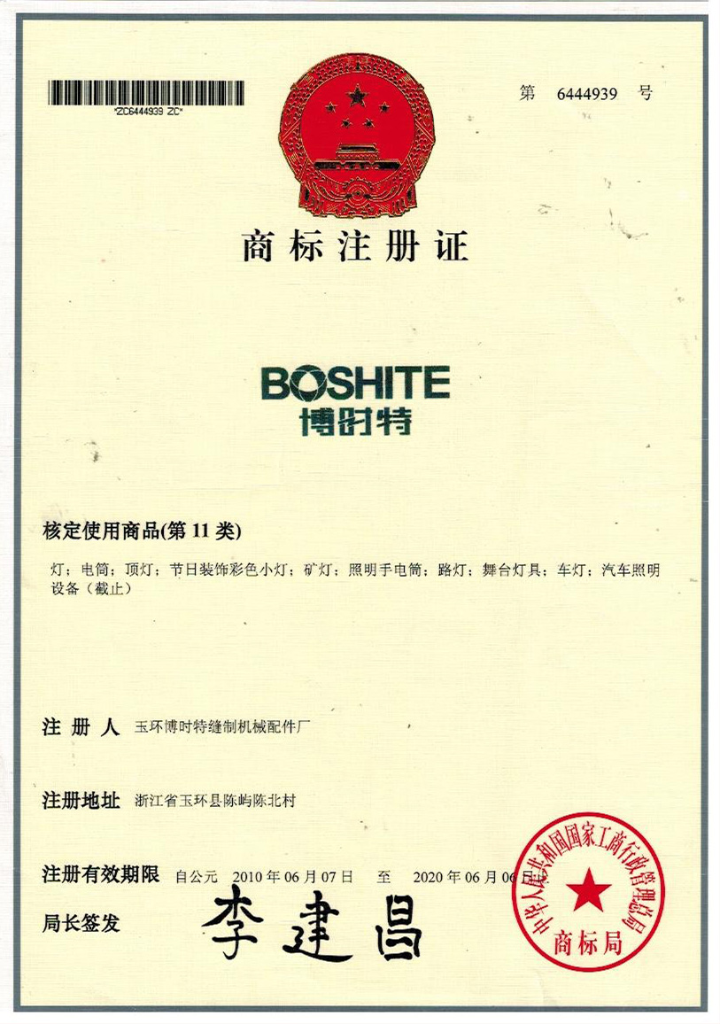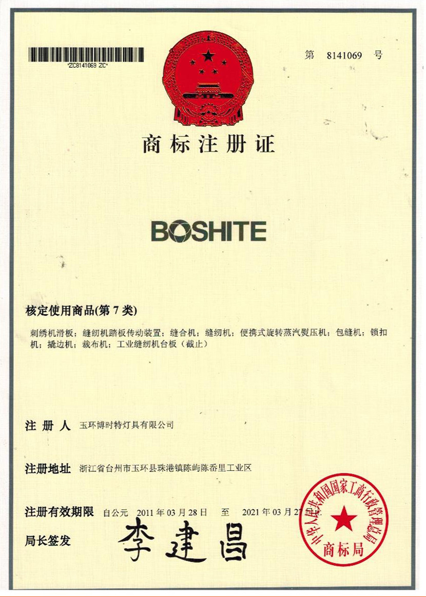 “BOSHITE” 商標(biāo)注冊證
