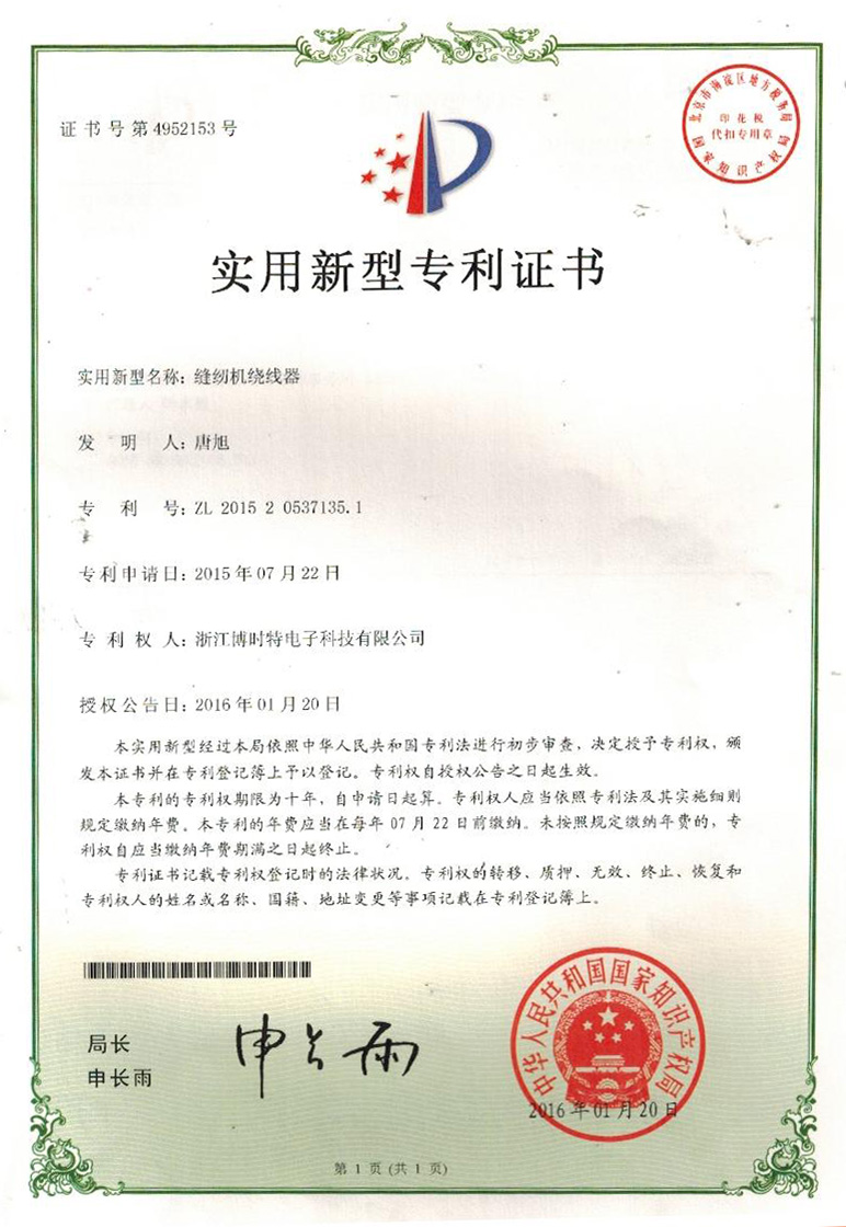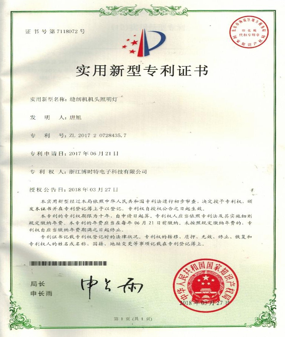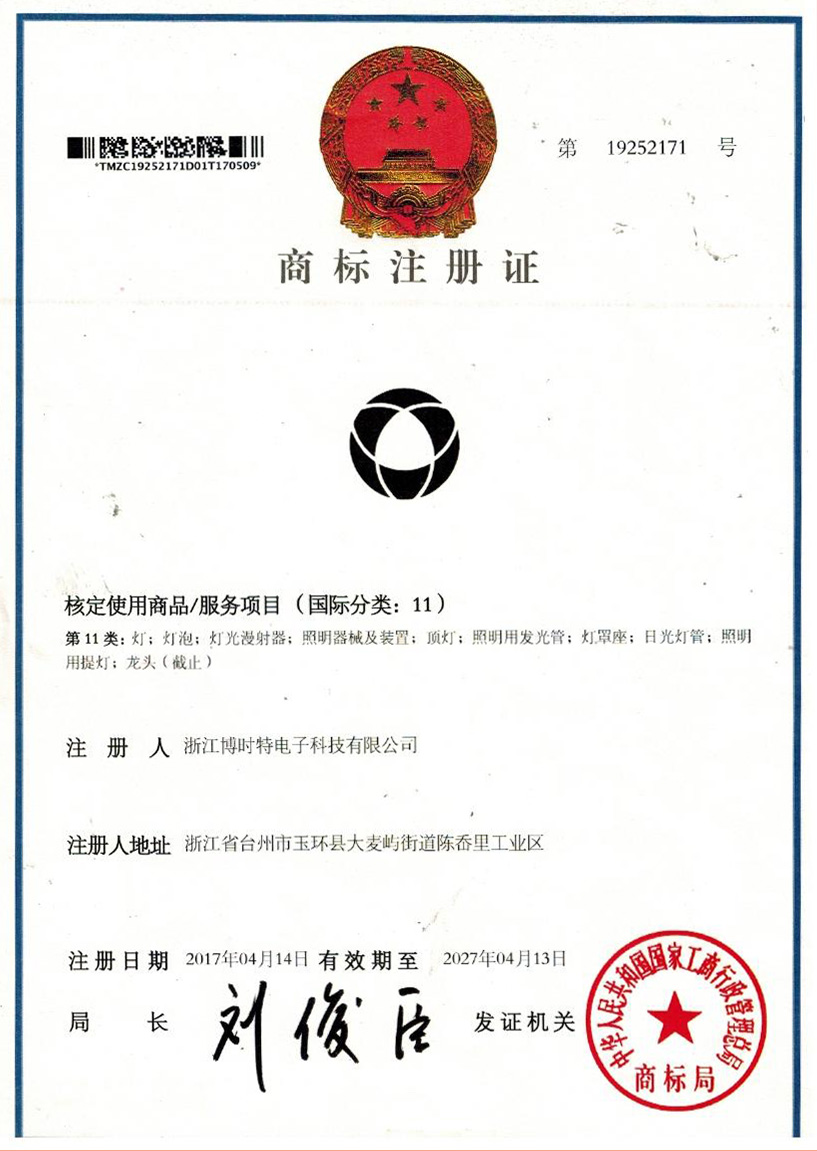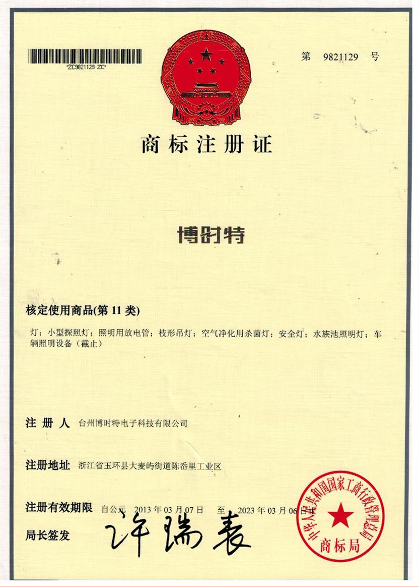 “博時(shí)特” 商標(biāo)注冊證