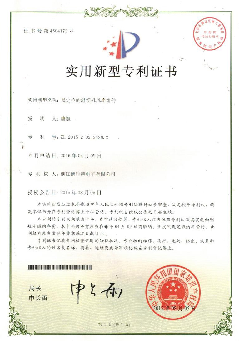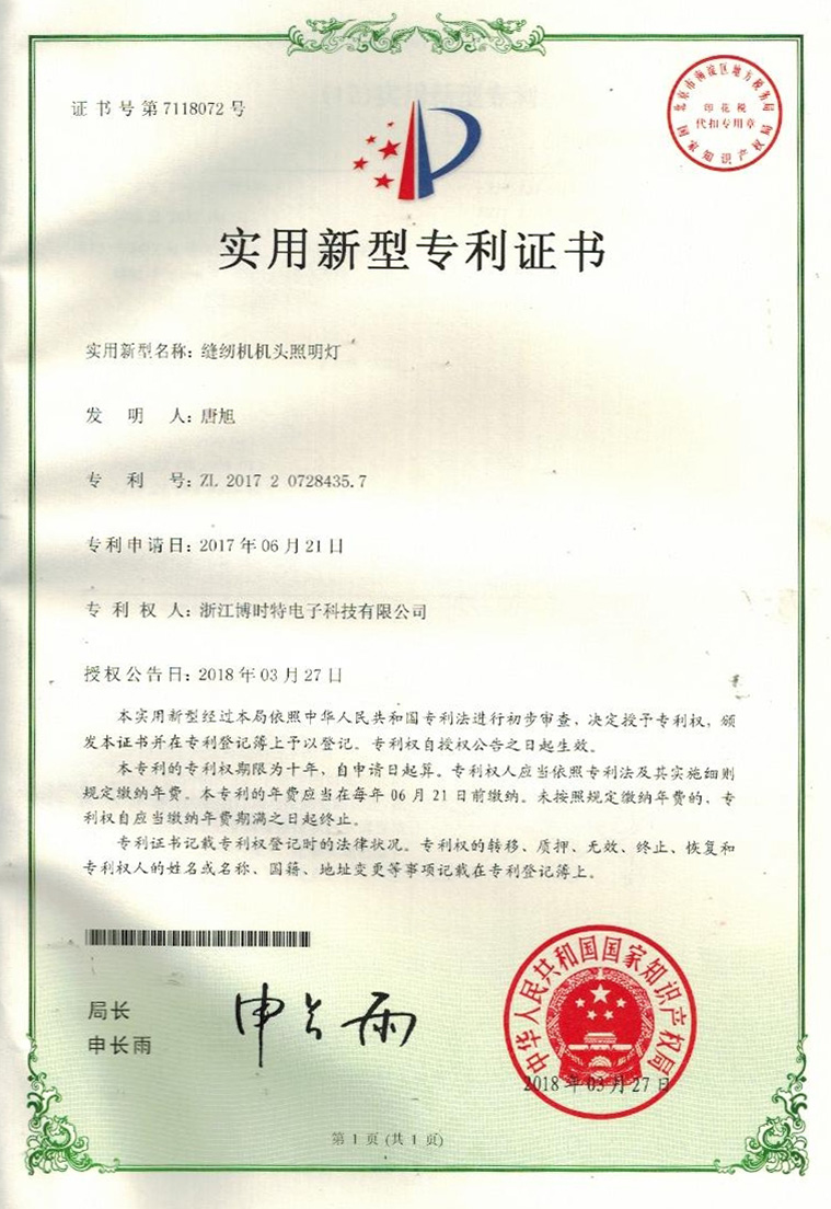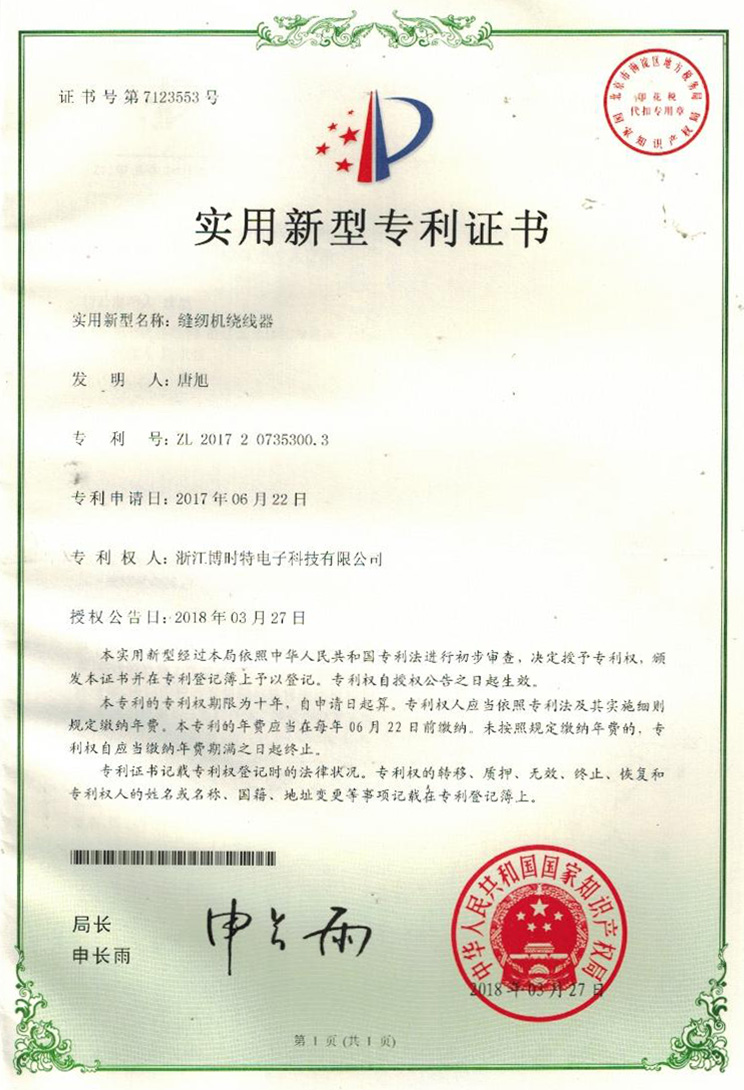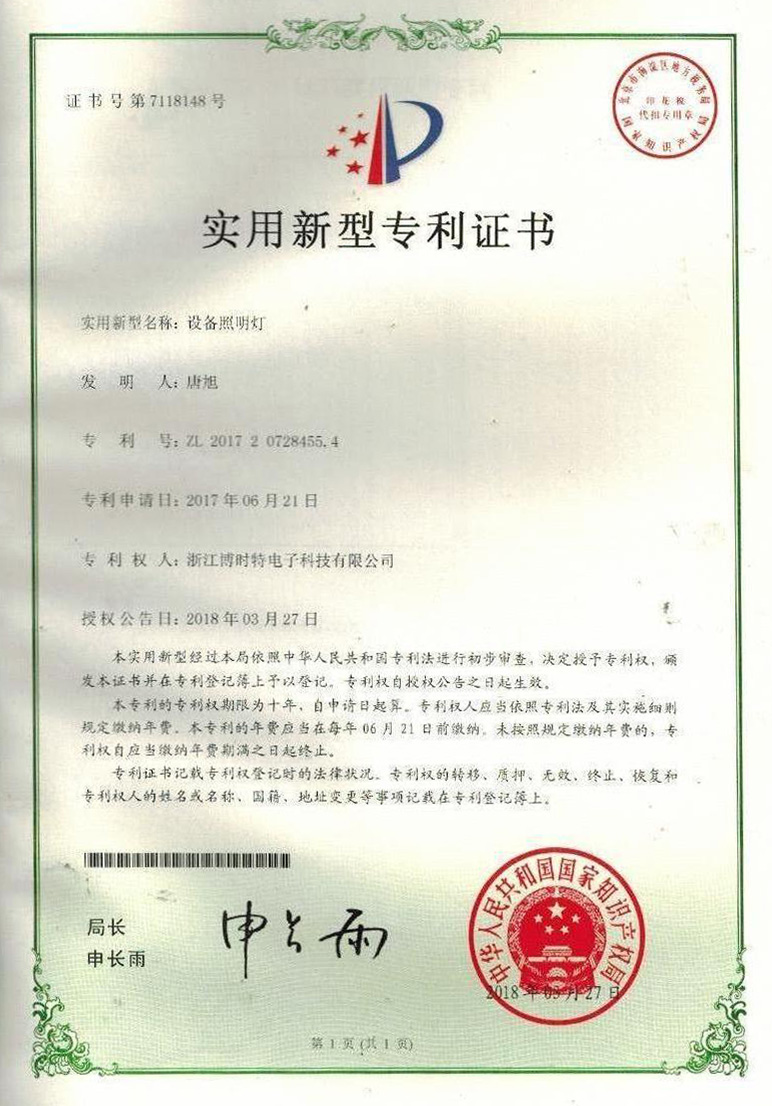 “博時(shí)特” 商標(biāo)注冊證