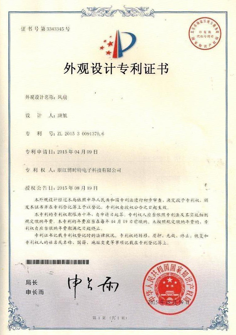 外觀設(shè)計(jì)專利證書