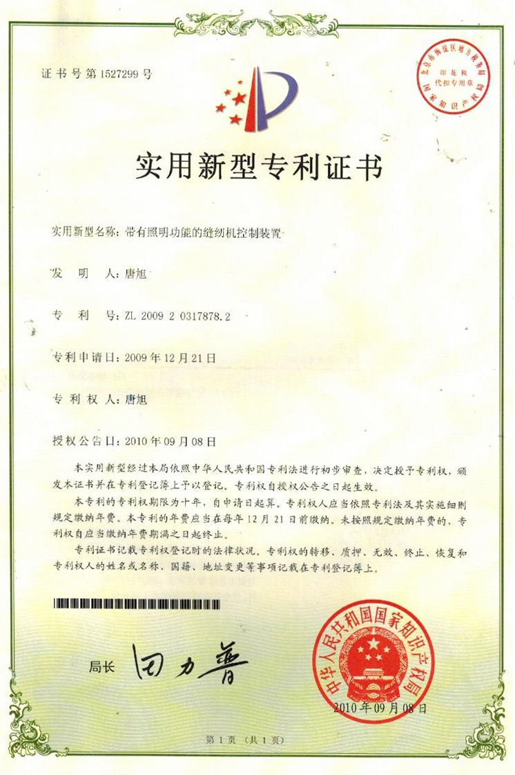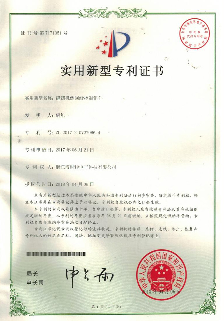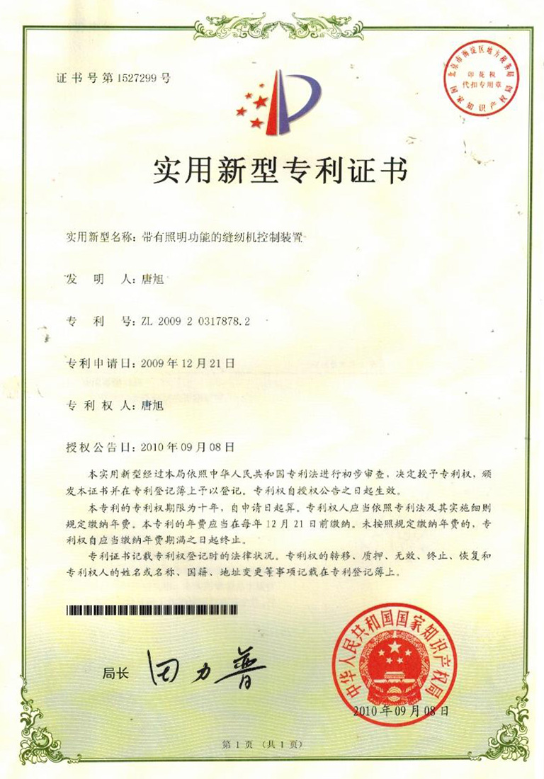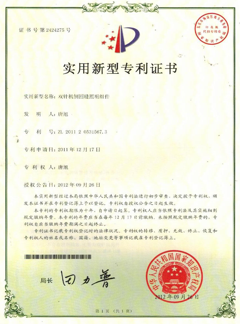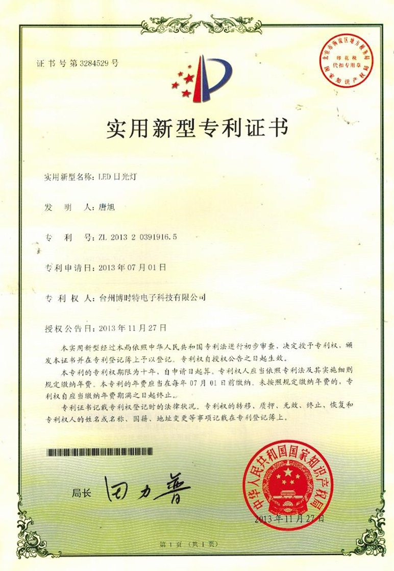 實(shí)用新型專利證書