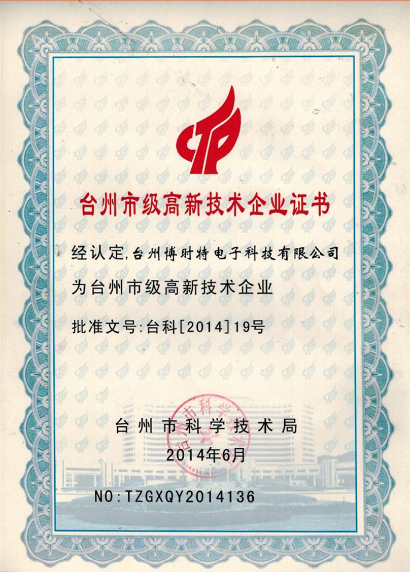 臺州市高新技術(shù)企業(yè)證書