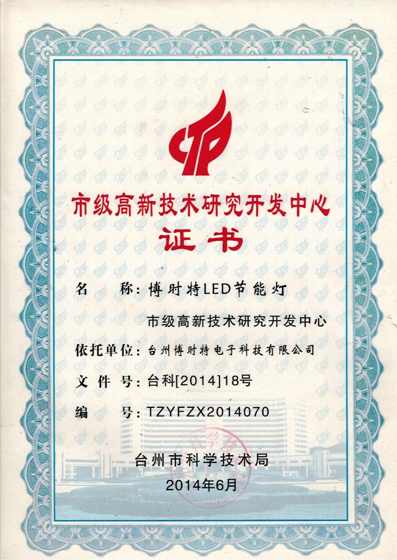 市級高新技術(shù)研究開發(fā)中心證書